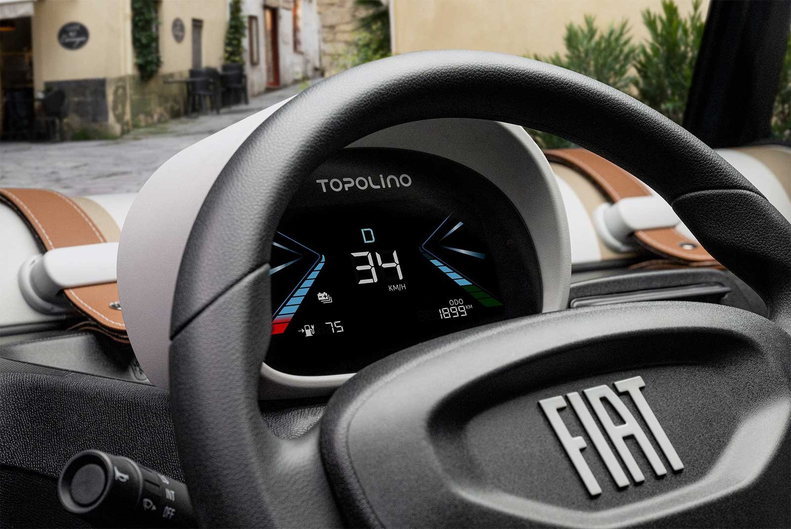 La Fiat Topolino se met à jour. Le petit quadricycle électrique accueille une nouvelle teinte Orange Corallo et un écran numérique agrandi.