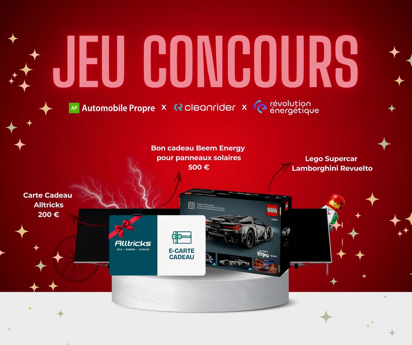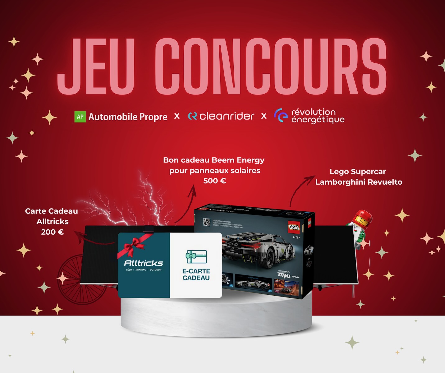 Pour la première fois, Automobile Propre, Cleanrider et Révolution Énergétique – médias du groupe Saabre – unissent leurs communautés pour un grand jeu concours de fin d’année. Solaire, mobilité douce, innovation : choisissez votre univers… et tentez de repartir avec l’un des trois cadeaux exclusifs mis en jeu !