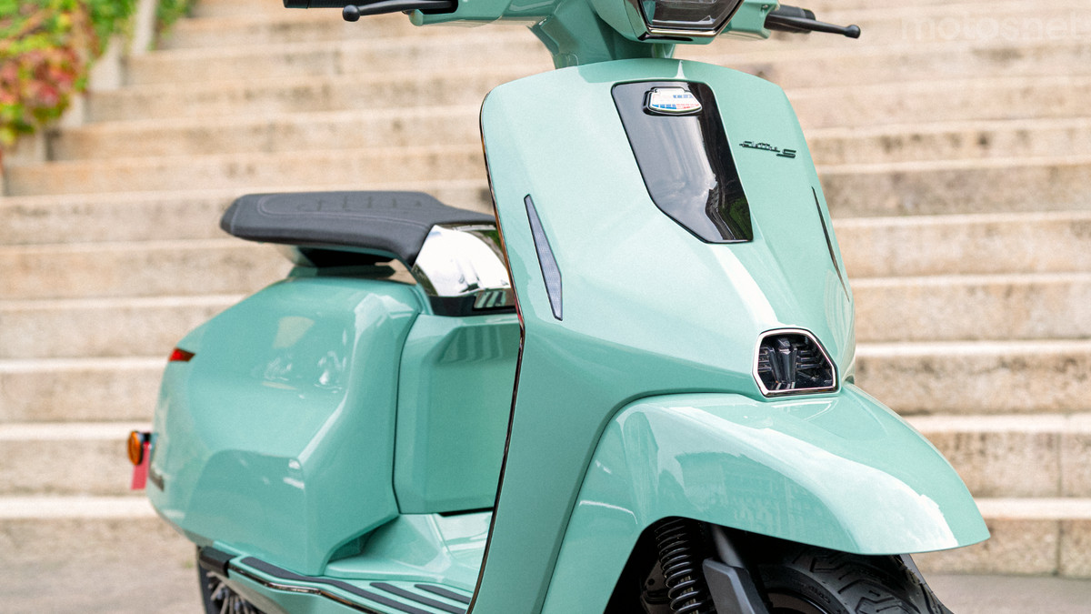 Fidèle au style vintage des modèles de la marque, ce premier scooter électrique 125 s’inscrit dans un esprit rétro-moderne assumé. Côté motorisation, on retrouve un bloc de 4 kW développant jusqu’à 6 KW en crête pour une vitesse maximale de 90 km/h. Trois modes de conduite sont proposés : Eco, Ride et Sport. Ils permettent d’adapter la réponse moteur et l’autonomie selon le type de trajet.