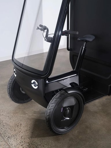 À mi-chemin entre vélo cargo à 4 roues et micro-utilitaire, le TM-Q ne ressemble à rien de connu. Doté de quatre roues mais toujours propulsé par un pédalage assisté, il combine la stabilité d’un petit véhicule et la maniabilité d’un vélo. Suffisamment compact pour se faufiler dans les pistes cyclables, il peut pourtant transporter jusqu’à 180 kg de charge utile.