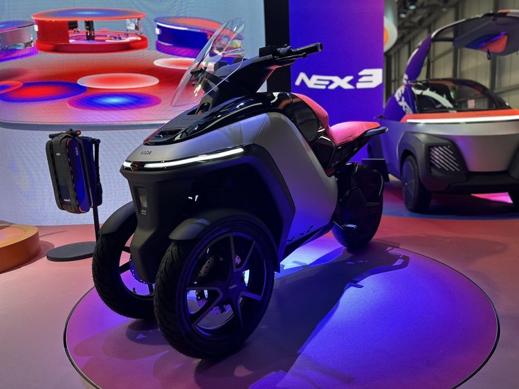 Le NEX 2, plus ambitieux, est l’équivalent d’un Piaggio MP3, à mi-chemin entre scooter et moto, offrant une alternative stable pour les trajets urbains.