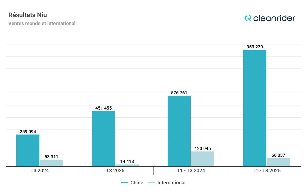 À l’international, Niu a vendu 14 418 véhicules au troisième trimestre. Ce chiffre marque un net recul par rapport à la même période en 2024, où 53 311 unités avaient été écoulées.