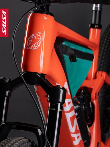 Le cadre intègre plusieurs points de fixation pour le transport de matériel : support de sacoche de cadre en montage direct, fixation d’accessoires sur le tube diagonal, emplacements pour outils, chambre à air et pompe. Toutes les tailles acceptent un porte-bidon. Le vélo est compatible avec la patte de dérailleur universelle SRAM UDH.