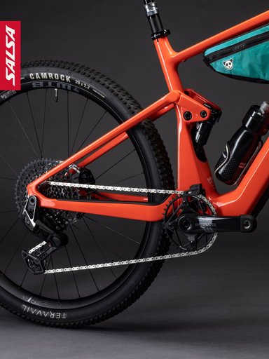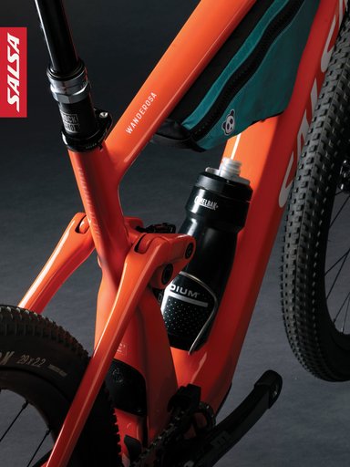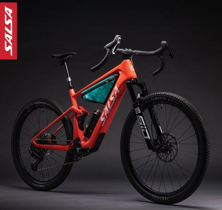 Teasé en novembre dernier, le Wanderosa marque l’entrée de Salsa dans la catégorie des gravel électriques tout-suspendus. Il s’agit du cinquième modèle électrique lancé par la marque du Minnesota depuis février 2024. Le vélo repose sur un cadre en fibre de carbone haut module avec un système de suspension arrière à haubans flexibles (flex-stay), offrant 110 mm de débattement à l’arrière et 120 mm à l’avant.