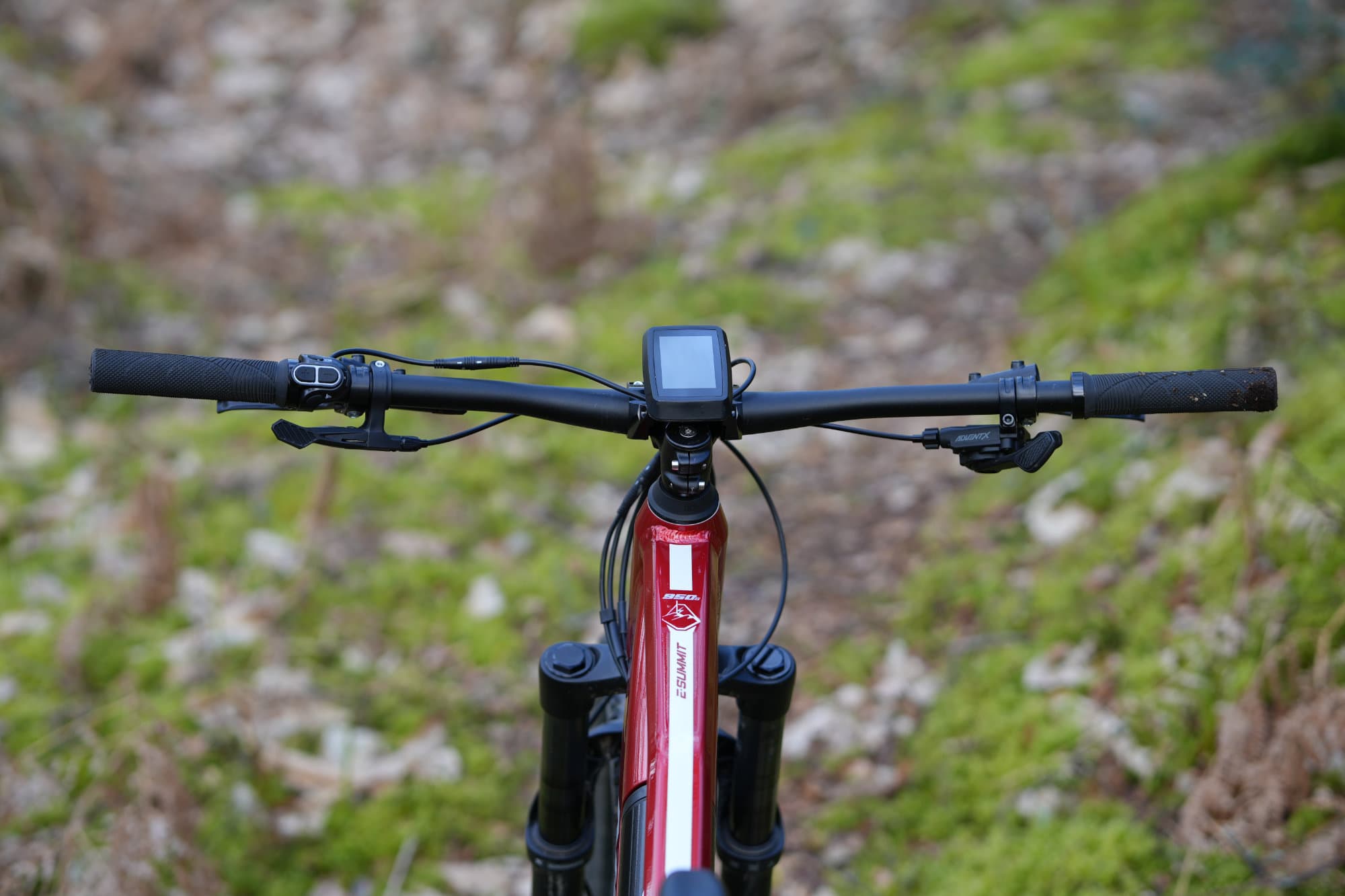 Avec ses disques de 180 mm et ses étriers à doubles pistons, ce système de freinage n’est pas adapté à une pratique plus engagée en haute montagne, mais convient très bien pour les sentiers champêtres et de moyenne montagne auxquels se destine cet E-Summit 950S.