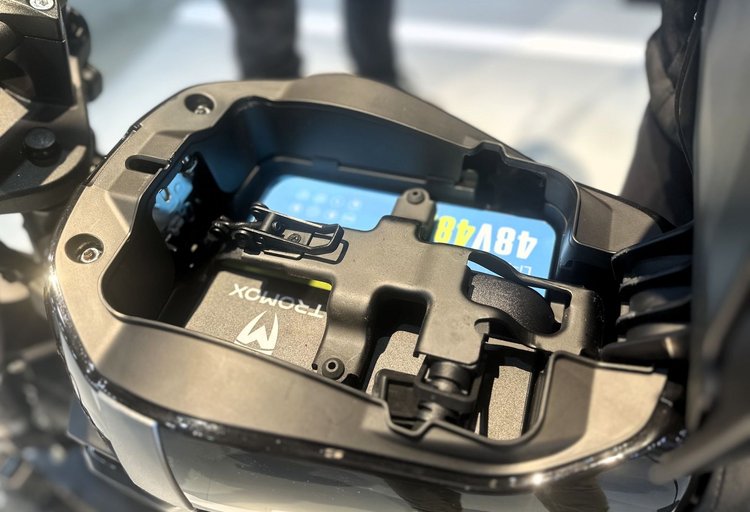 Grande sœur de la petite M03, la nouvelle moto électrique de Tromox embarque un moteur de 3 kW. Intégré à la roue arrière, ce dernier peut atteindre 70 km/h de vitesse de pointe. Il peut aussi être bridé à 45 km/h. Côté batterie, le fabricant fait appel à un pack LFP amovible de 2.3 kWh (48V – 48 Ah). L’autonomie est donnée pour 80 à 85 km avec un plein.