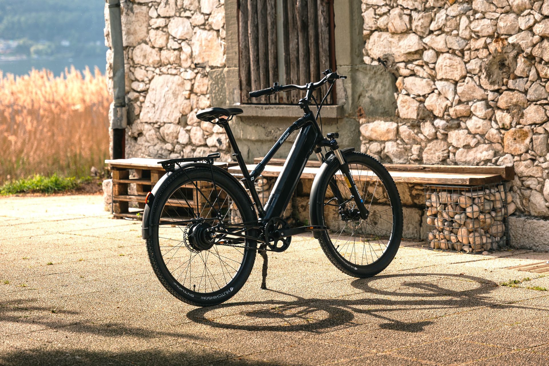 Ce qui change, c’est la fourche avant suspendue SR Suntour XCM32 de débattement 80 mm, afin de s’aventurer plus facilement hors bitume. Les pneus davantage crantés Hutchinson et plus larges (2,10 pouces contre 1,75) aident également, tout comme la transmission par dérailleur Shimano Alivio 8 vitesses, tandis que le choix de courroie reste possible. Le poids est ainsi plus élevé que la version Urban, soit 24 kg.