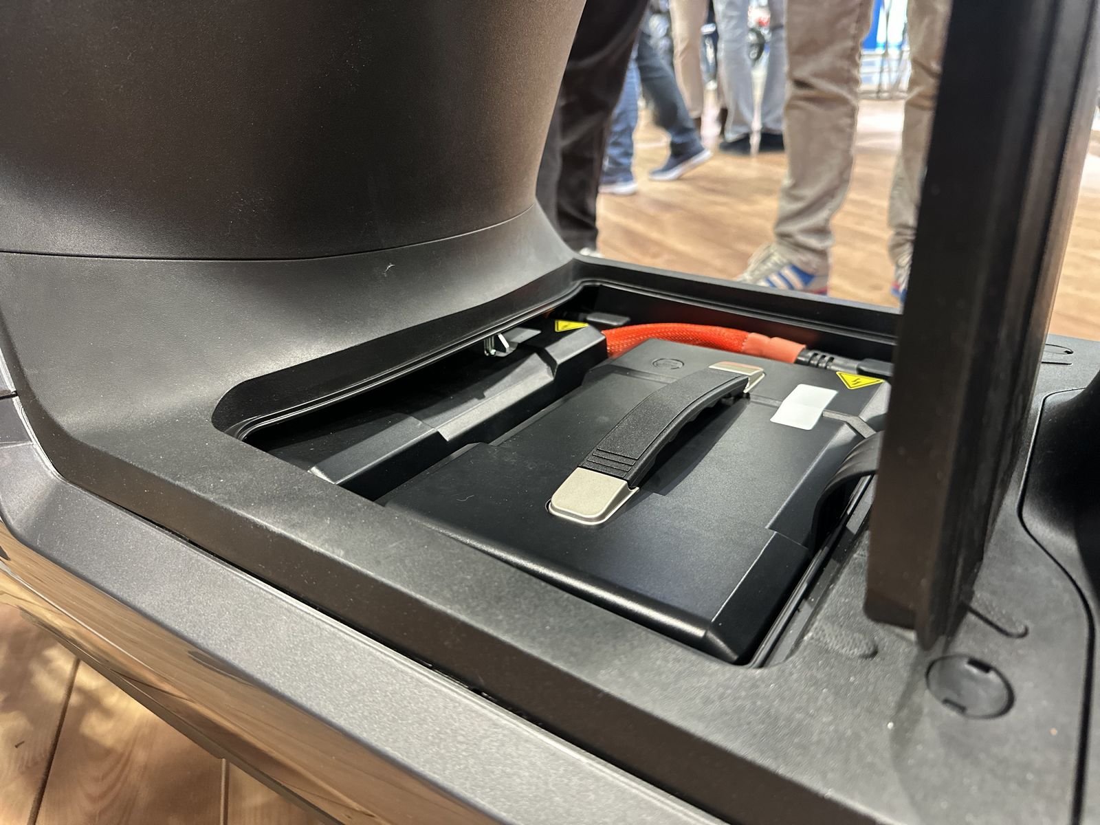 Amovibles, ces batteries peuvent être directement chargées sur le scooter via un chargeur de 1,5 kW. Si vous le devez les retirer, il faudra supporter leur poids : comptez 12,5 kg par pack.