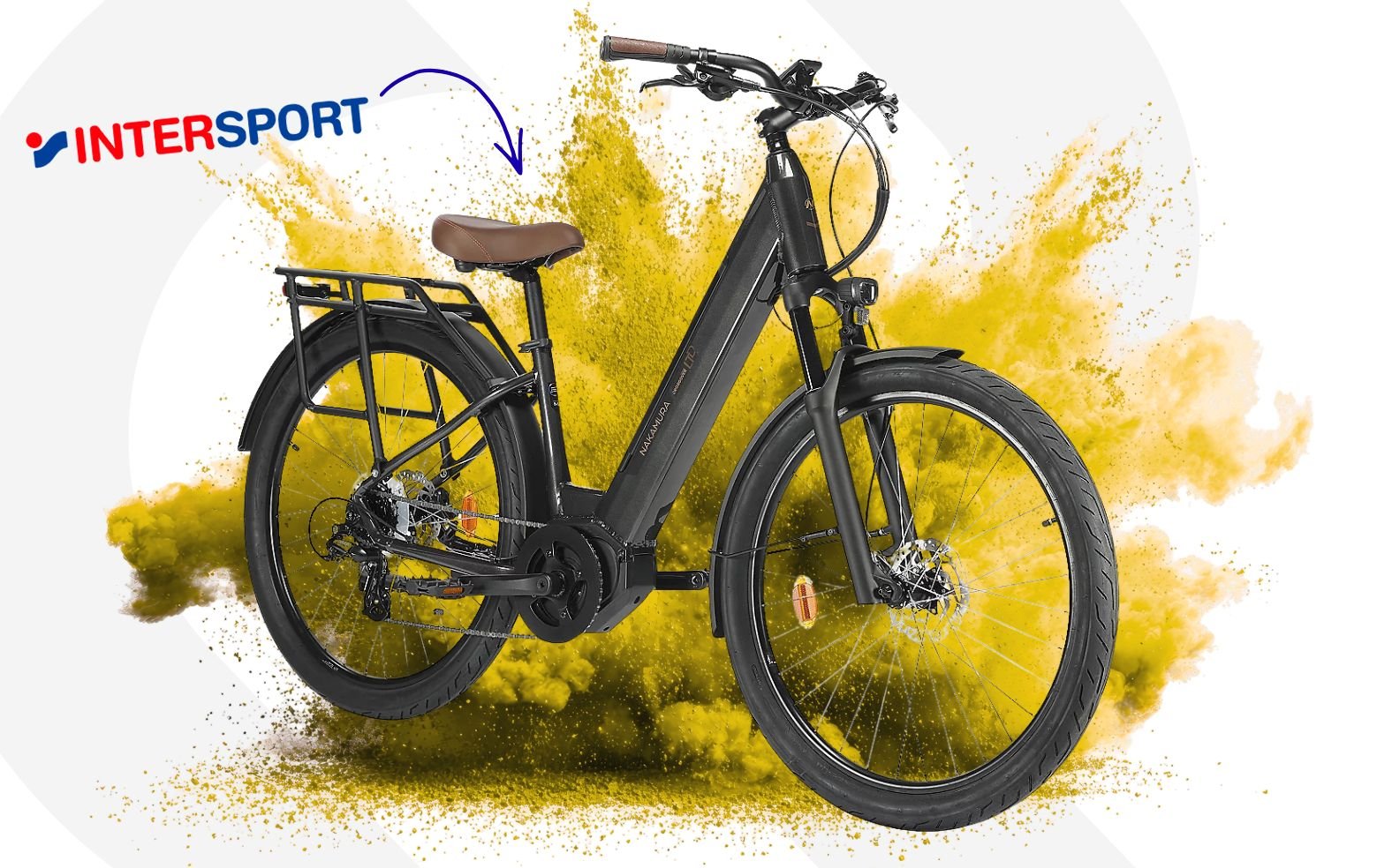 Ce vélo électrique Intersport repose sur un moteur central Naka E-Power One développant jusqu’à 70 Nm de couple, associé à une batterie intégrée de 460 Wh. De quoi offrir une assistance adaptée à des usages variés, qu’il s’agisse de trajets domicile-travail ou de balades plus longues.