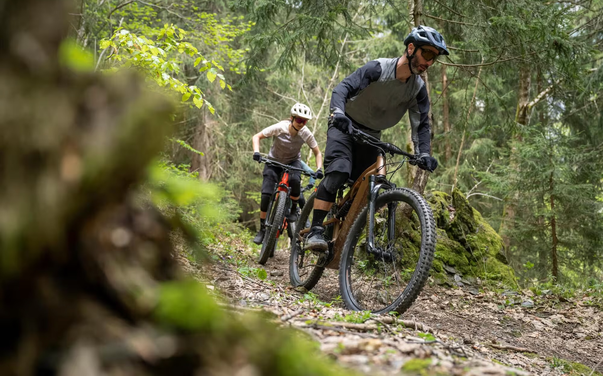 Plus orientés randonnée sportive, les E-EXPL 520 S et 700 S adoptent tous les deux une architecture tout-suspendue en 29 pouces, avec un débattement identique de 140 mm à l’avant comme à l’arrière. L’idée est simple : gagner en confort et en contrôle sur les chemins cassants, tout en conservant une géométrie polyvalente pour enchaîner les sorties longues.