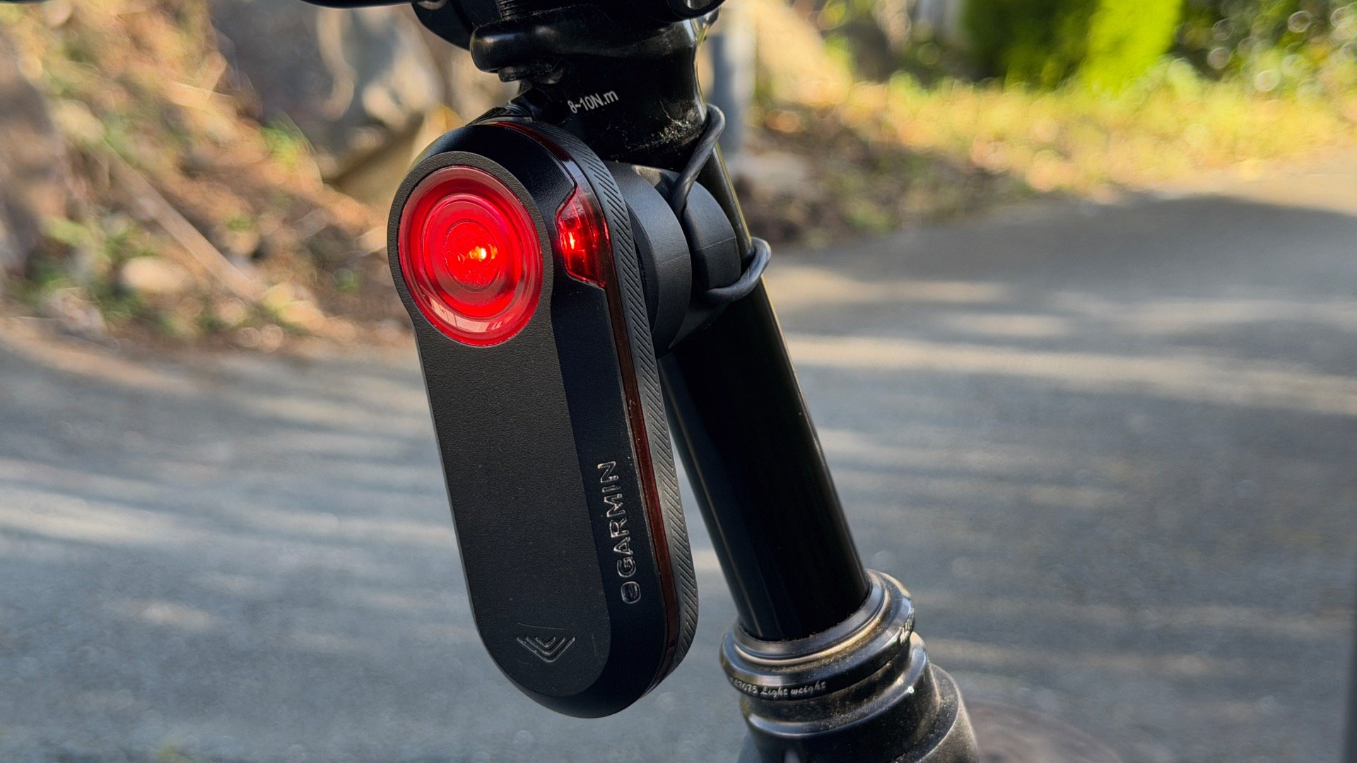 Au déballage, le Garmin Varia RTL515 se présente comme un boîtier vertical assez discret, pesant environ 71 grammes. Il s’installe facilement sur la tige de selle grâce à un support quart de tour robuste et des adaptateurs compatibles avec les tiges rondes ou profilées (aero).