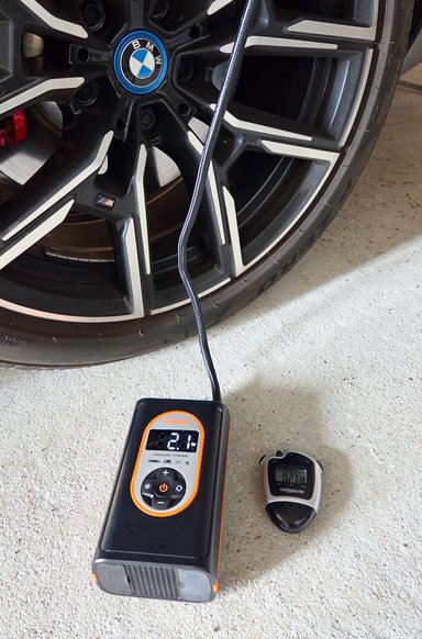 Résultat : environ 24 minutes d’utilisation continue sur batterie. De quoi regonfler un grand nombre de pneus sur une seule charge, mais pas les quatre pneus entièrement à plat d’une voiture. Dans ce cas, l’alimentation 12 V du véhicule reste la solution la plus adaptée, sans oublier de respecter les phases de refroidissement.
