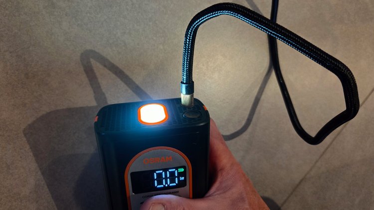 Fidèle à son héritage, Osram n’a pas oublié l’éclairage. Le gonfleur intègre une lampe LED située sur le haut de l’appareil. Ce n’est pas un gadget : elle s’avère extrêmement pratique pour repérer la valve, visser l’embout et surveiller l’état du pneu dans le noir total, que ce soit lors d’une crevaison nocturne ou simplement pour un entretien hivernal en fin de journée.