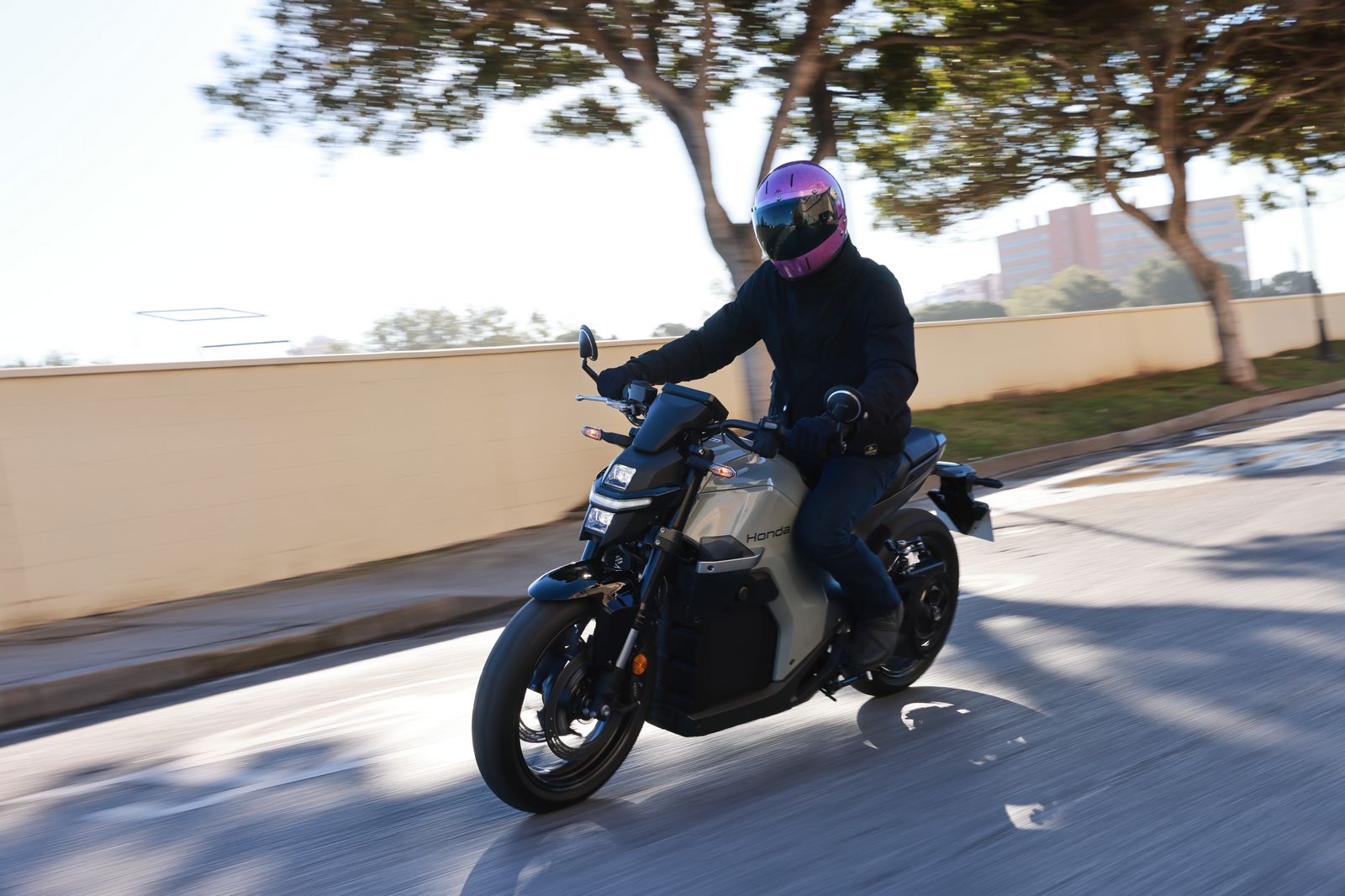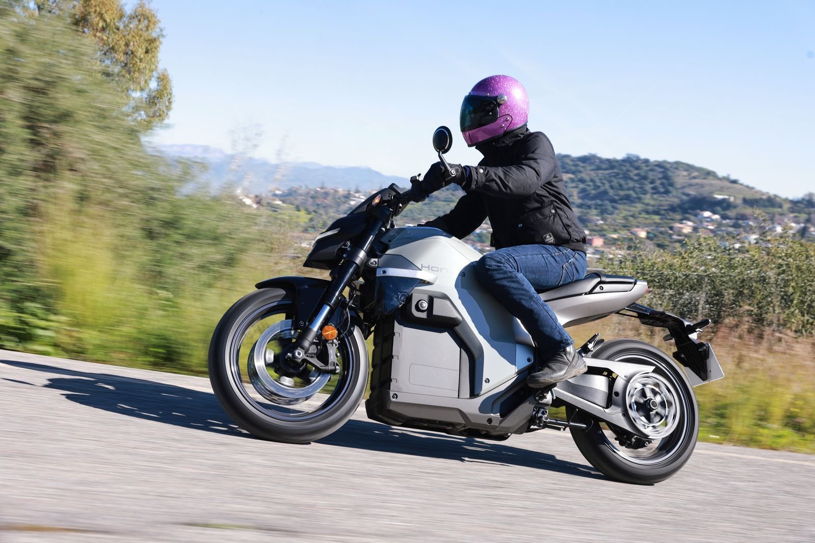 Suffisamment rare pour être signalé, les ingénieurs Honda nous ont expliqué que les éléments structurants, le bâti arrière, le monobras et le noyau avant procurent une flexibilité similaire aux modèles thermiques. Le but ? Garantir une sensation de conduite fidèle aux motos thermiques de la marque. C’est constaté : la machine se guide au doigt et à l’œil, se serre facilement entre les genoux tant elle est fine. Dans les grandes courbes des autoroutes allemandes, on regrette seulement de ne pas pouvoir passer plus vite que les 129 km/h (132 km/h compteur en descente).