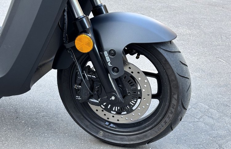 Le freinage fait partie des bonnes surprises de cet E250S. En usage urbain comme sur les grands axes, le scooter freine fort, de manière progressive et sans provoquer de réactions parasites dans le guidon. Lorsque l’ABS entre en action, le comportement reste parfaitement maîtrisé : pas de vibrations désagréables ni de claquements dans les leviers.