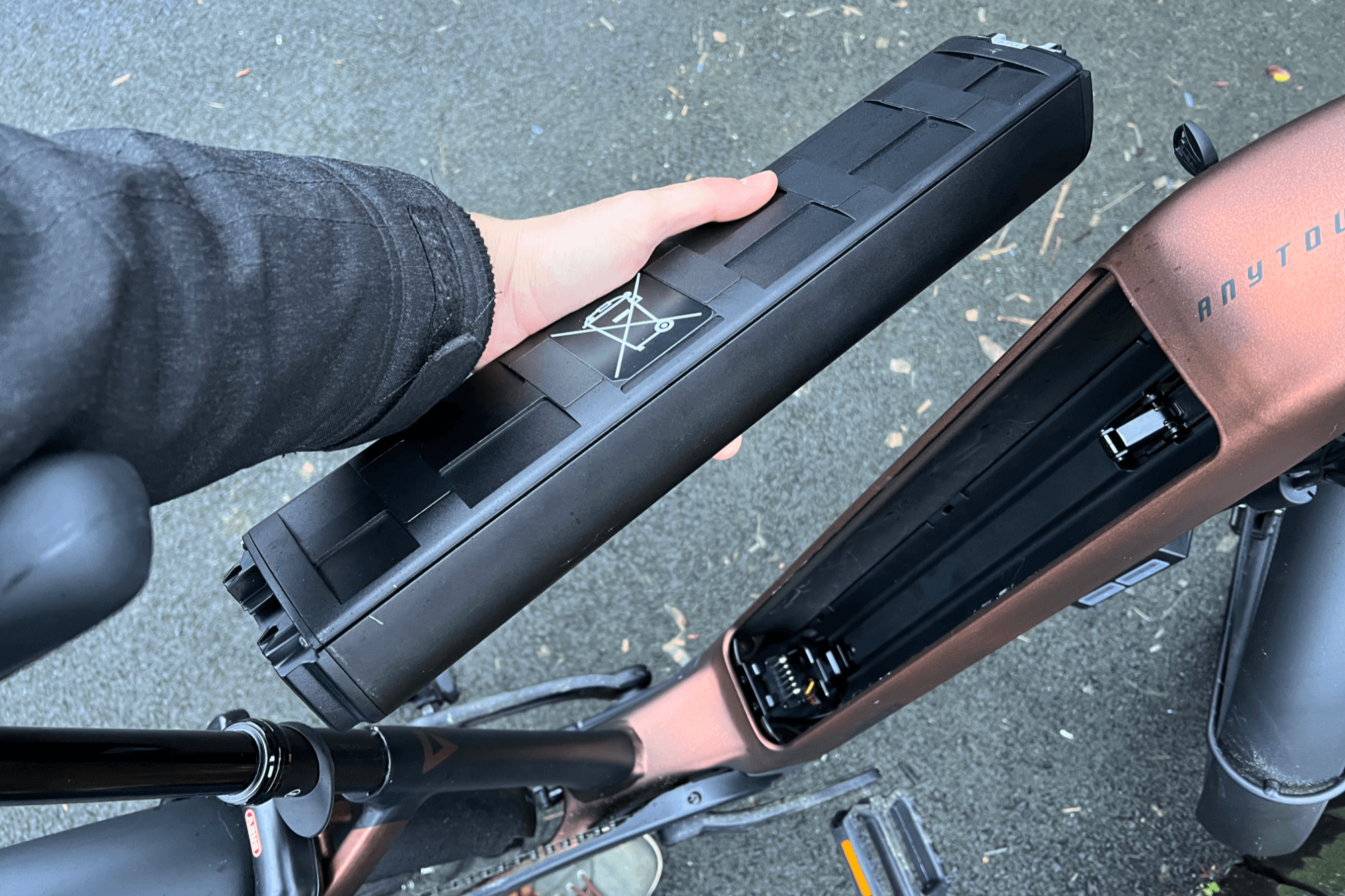À la découverte de la capacité de la batterie de cet AnyTour X E+1, nous nous doutions qu’il faudrait potentiellement nous y prendre à plusieurs fois pour boucler notre test d’autonomie. De fait, les 800 Wh nous ont permis de rouler tout d’abord 35 km, puis 36 km le lendemain, avec un total de 660 m de dénivelé positif par temps frais (10 °C) et avec un chargement de 85 kg (cycliste et équipement). Des parcours réalisés en utilisant le mode d’assistance le plus élevé, et donc le plus énergivore (Power). De quoi déterminer l’autonomie minimale que l’on peut attendre de ce vélo.