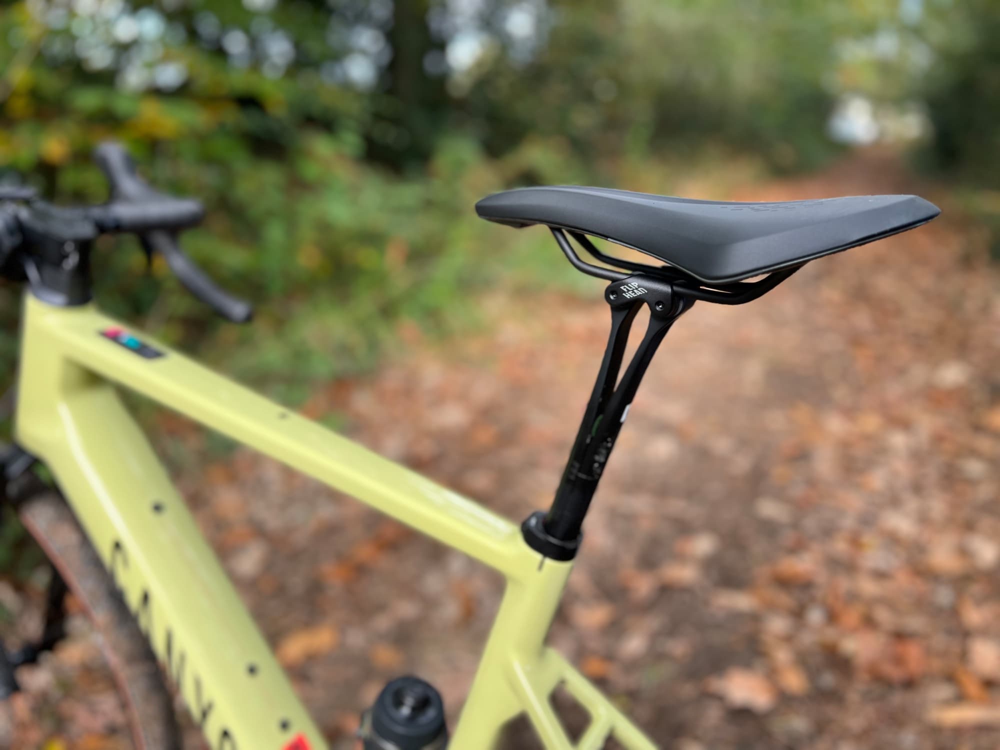 La selle Fizik Argo Terra X5 est du même acabit. On l’apprécie d’autant plus qu’elle est montée sur une tige en carbone S14 maison, dont la technologie VCLS 2.0 est conçue pour absorber les secousses et vibrations — à la manière d’une tige de selle suspendue, la baisse de rendement en moins.