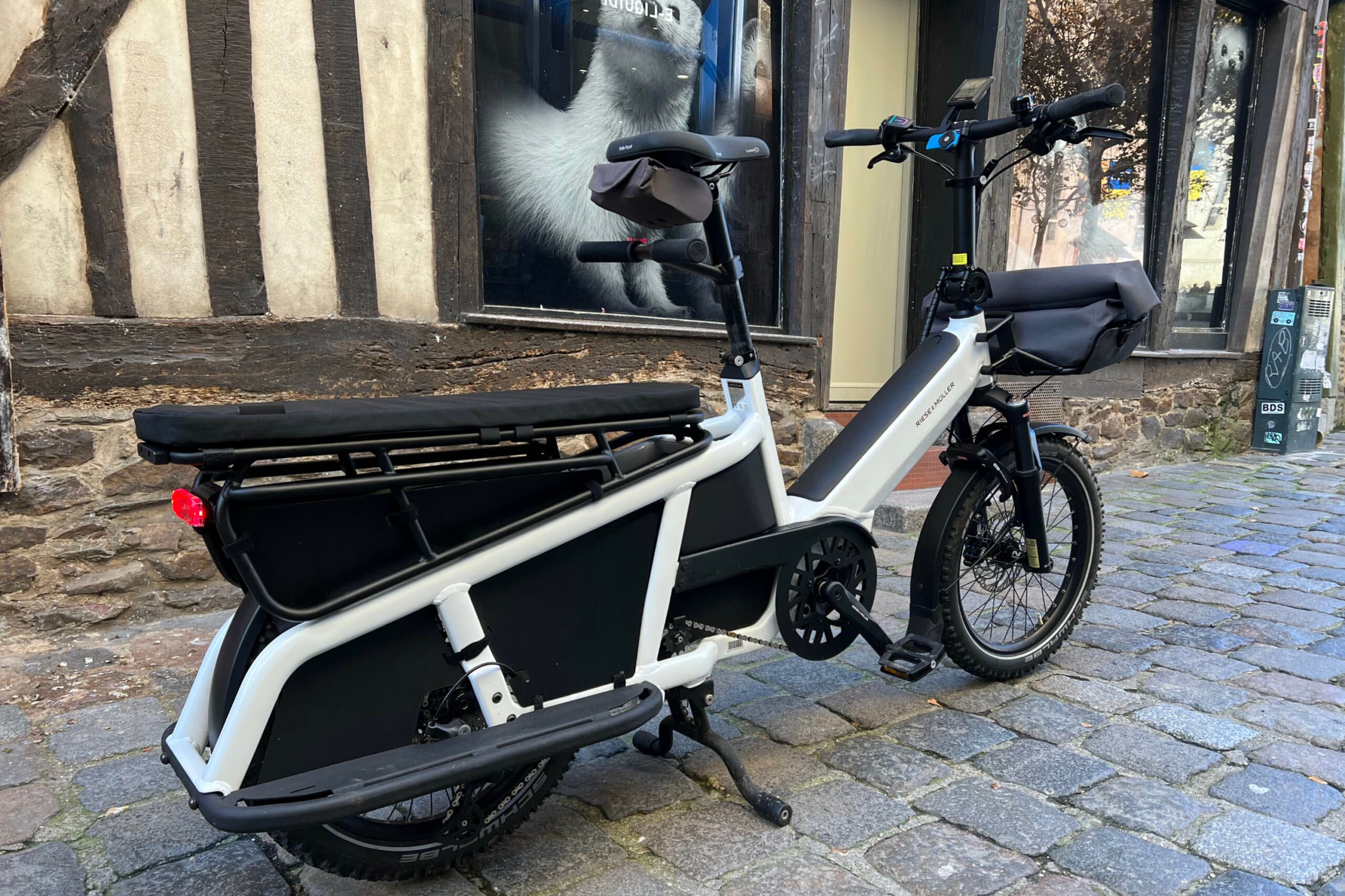 Pas plus imposant qu’un vélo classique malgré son porte-bagages allongé, le Multitinker du fabricant allemand Riese & Müller fait partie de la catégorie des longtails compacts. Il est conçu pour se faufiler dans la ville avec son chargement et sans encombrer le garage ni les parkings à vélos.