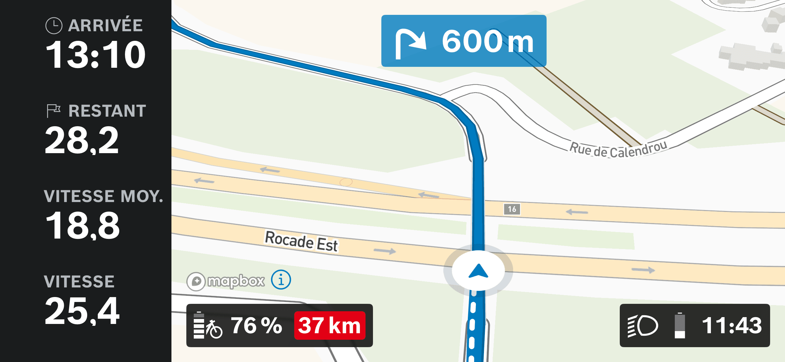 Cet ensemble intègre le Système Intelligent (Smart System) de Bosch, qui dispose également d’une connectivité Bluetooth pour utiliser l’app eBike Flow sur son smartphone. De quoi profiter notamment de la navigation GPS, de l’enregistrement des itinéraires et d’informations supplémentaires durant la conduite (dénivelé, consommation, etc.).